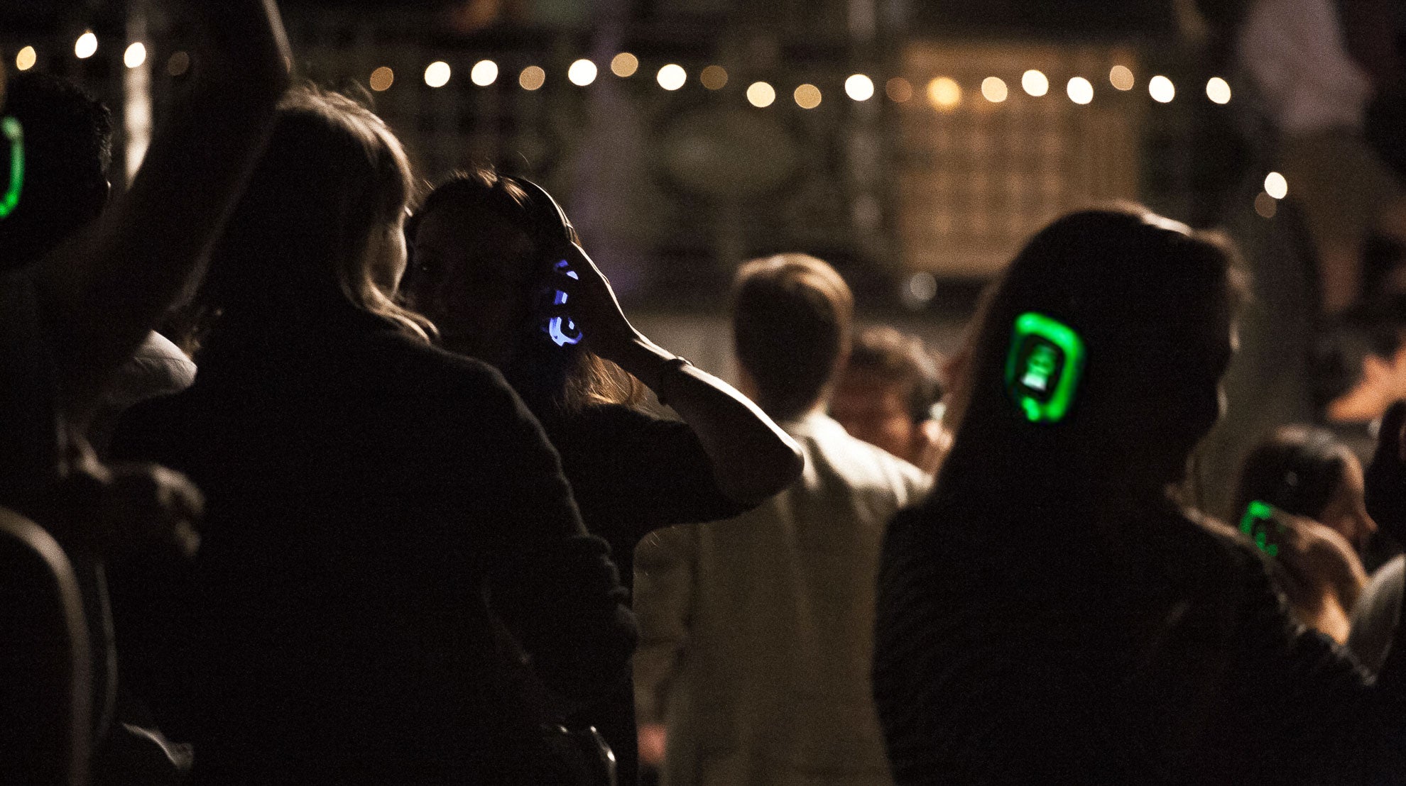 Le canal sélectionné est visible par tous les participants de la Silent disco grâce aux éclairages LED intégrés aux casques. Découvrez ce que les autres écoutent !
