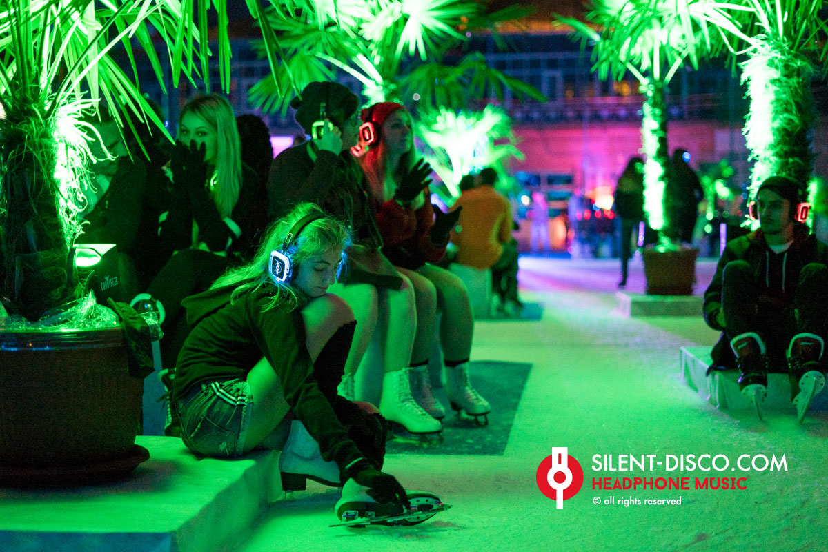 Une silent-disco sur patins à glace ou en roller.