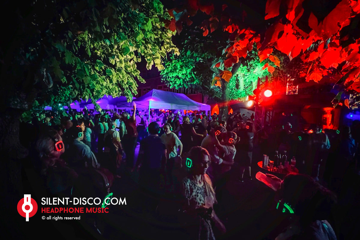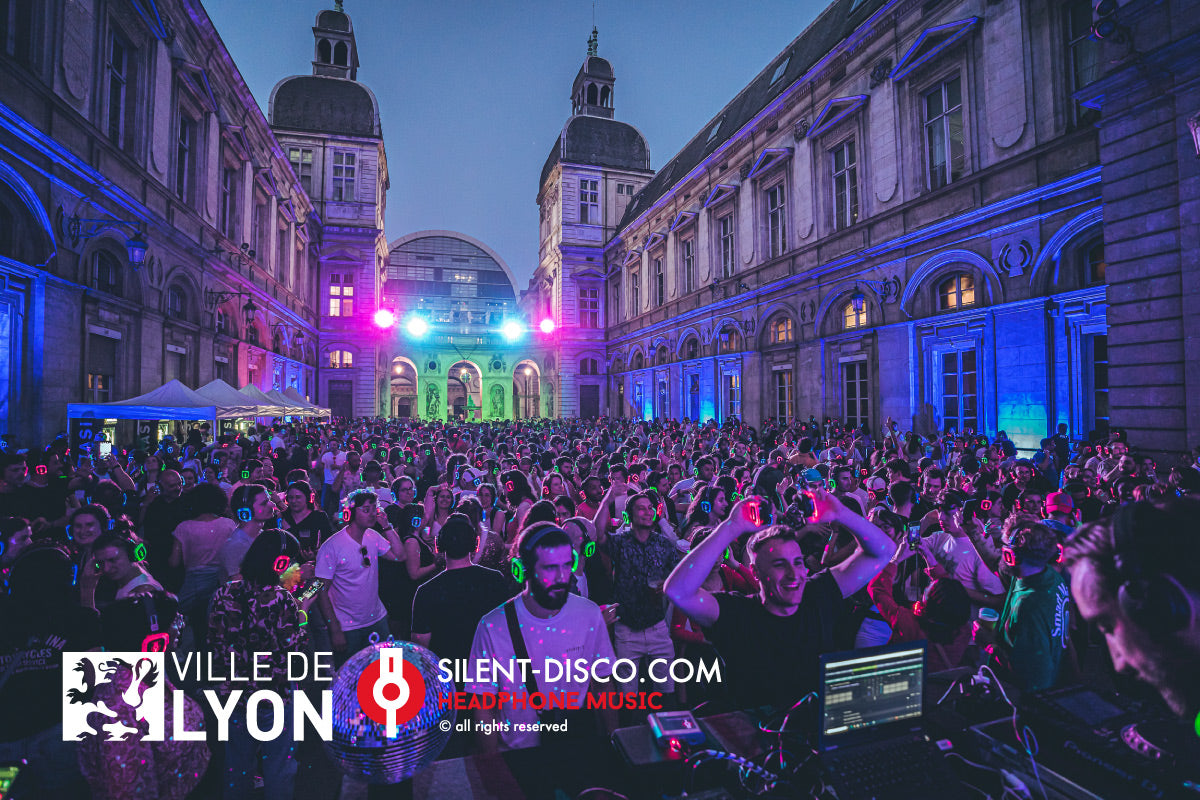 Les Silent disco reposent sur un système de diffusion de musique via un réseau de casque sans fil qui procure une expérience très différente de celle ressentie lors de l'utilisation d’enceintes amplifiées classiques.