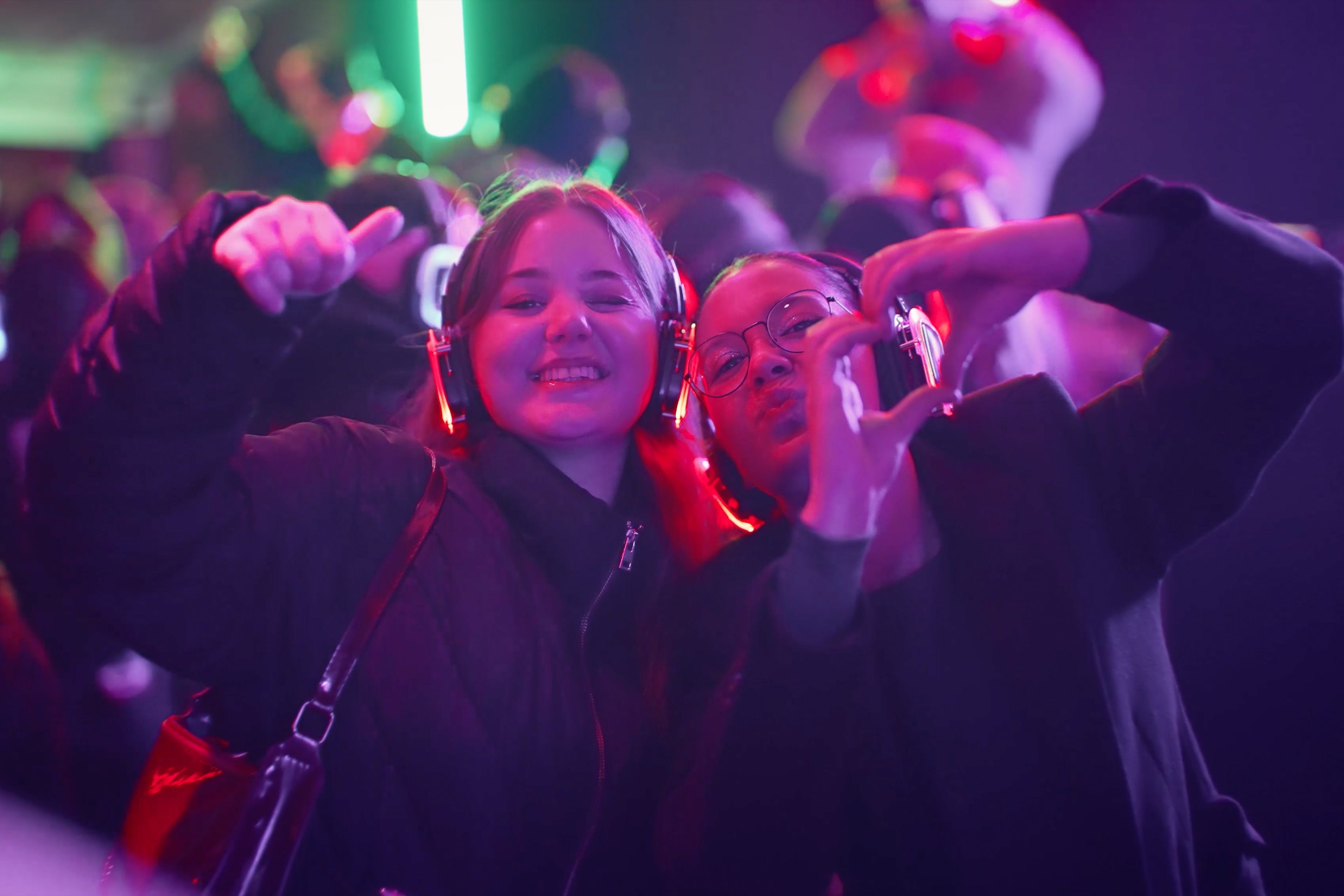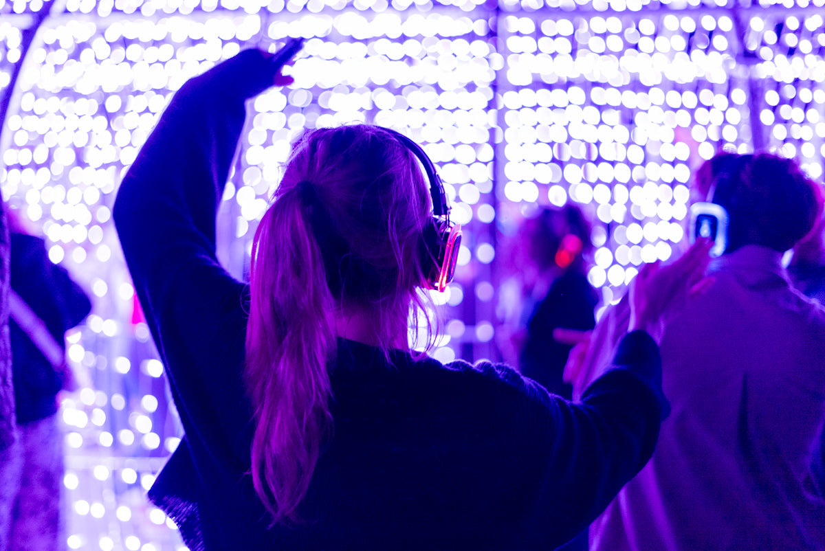 Le canal sélectionné est visible par tous les participants de la Silent disco grâce aux éclairages LED intégrés aux casques. Découvrez ce que les autres écoutent !
