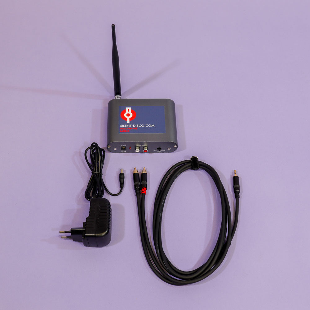 > Miete 40 Kopfhörern + 3 Sender HF + 3 Kabel Mini-Jack / Cinch.